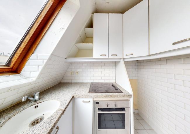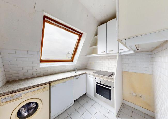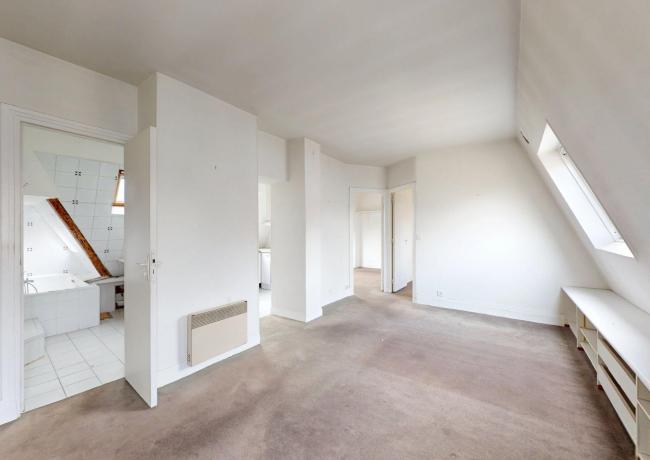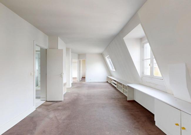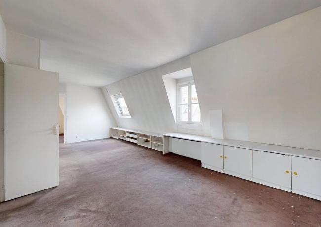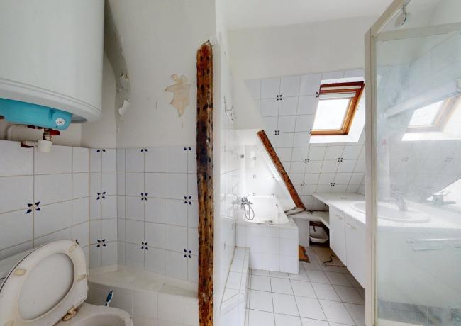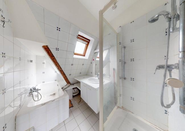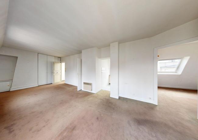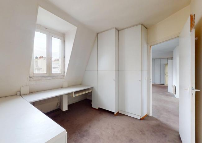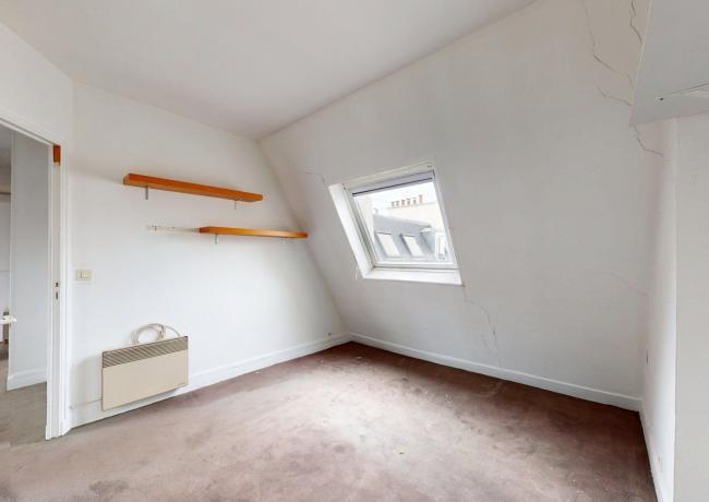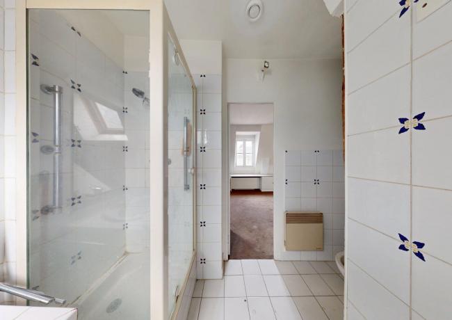Au 6e étage : un appartement de type F3, comprenant entrée sur séjour double, cuisine aménagée et équipée, deux pièces dont une avec placards, salle de bains: baignoire, douche et wc. Travaux à prévoir.