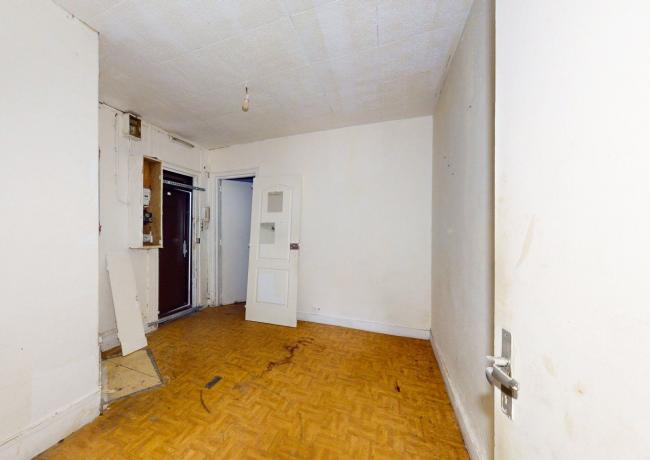 Au rez-de-chaussée, un appartement traversant de type F2 comprenant : séjour, chambre, cuisine, salle d'eau/wc. Travaux à prévoir. Absence d'équipement de chauffage.