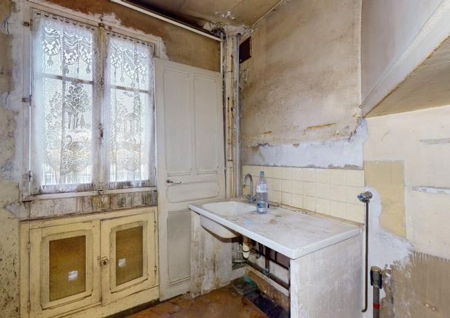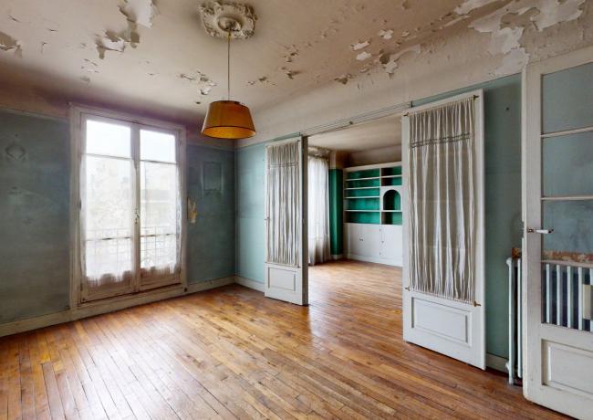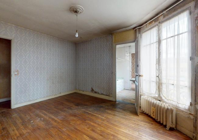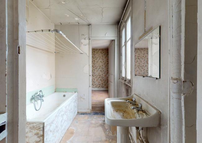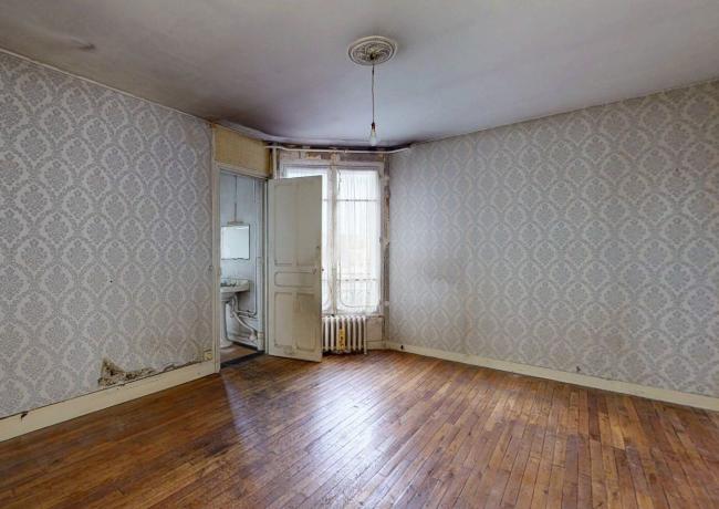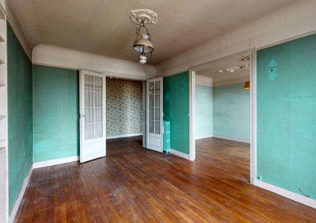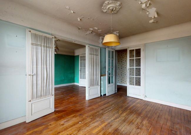 Au 4e étage : un appartement de type F4, comprenant entrée, double séjour, 2 chambres, cuisine, salle de bains. Absence de wc. Travaux à prévoir.