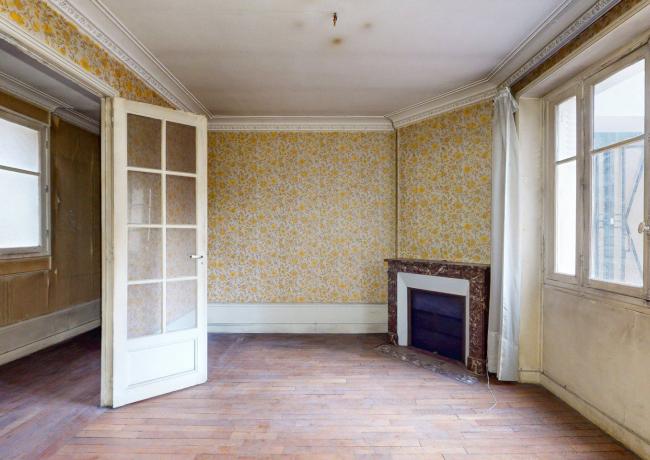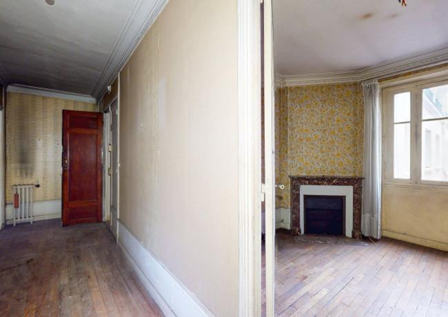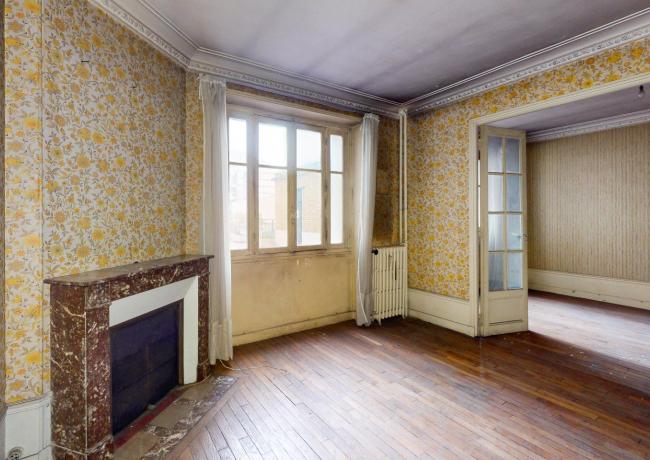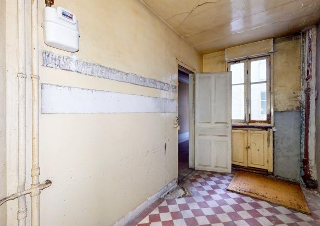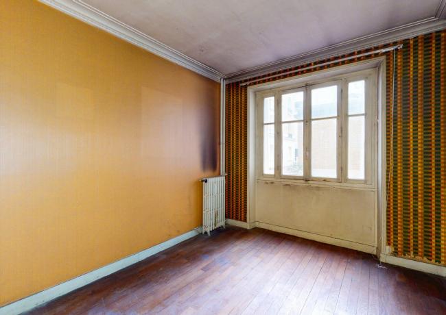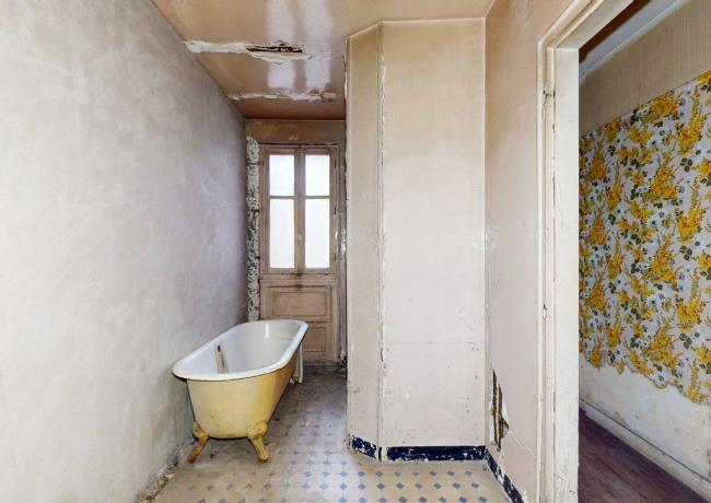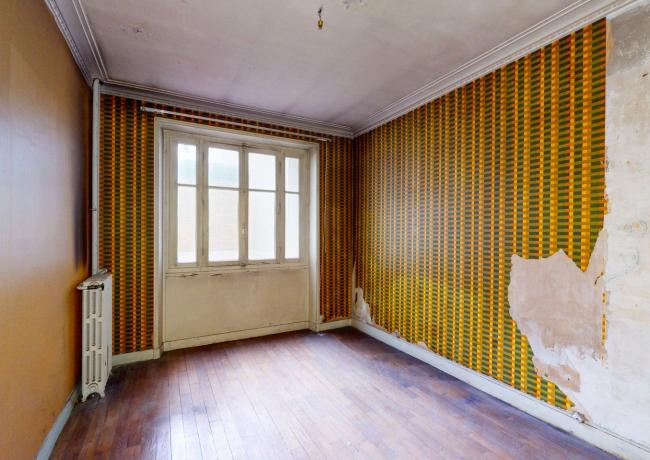 Au rez-de-chaussée : un appartement de type F3, comprenant entrée, trois pièces principales, cuisine, salle de bains, débarras, wc. Travaux à prévoir.