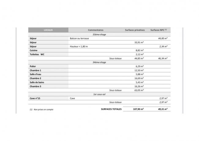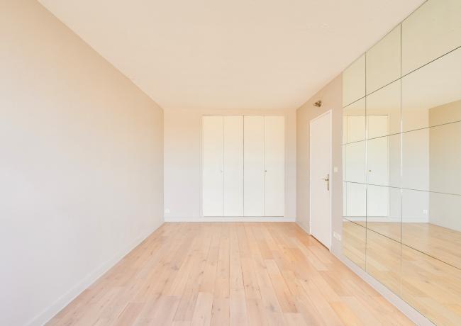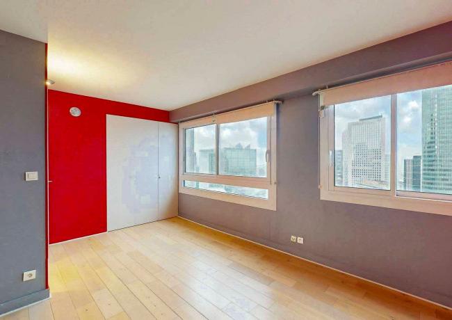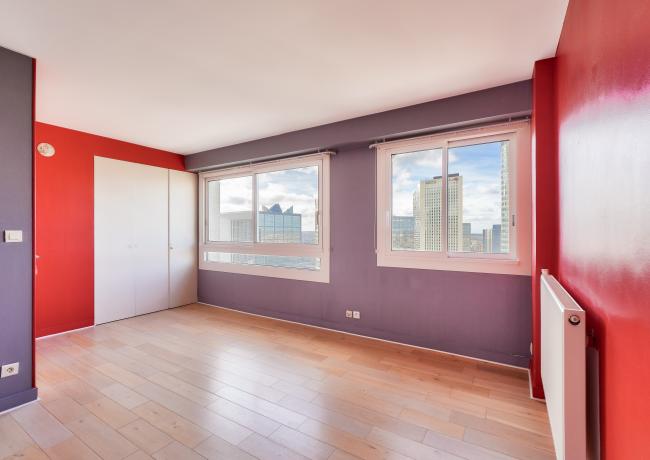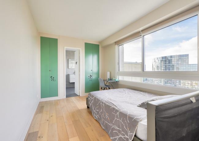 Au 34e étage, trois chambres spacieuses (12m², 16,5m², 16,5m²), dont une suite parentale