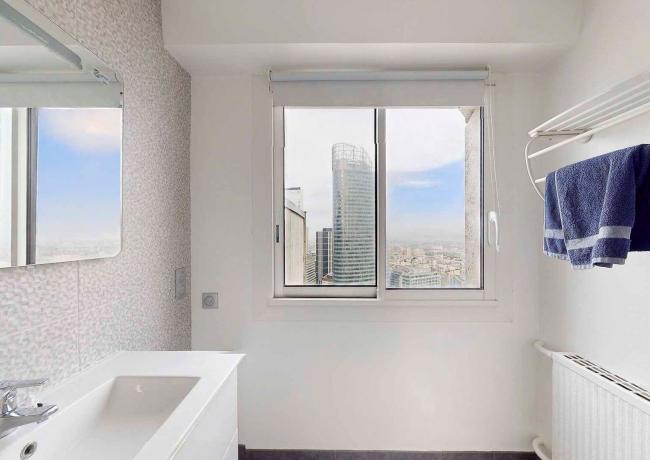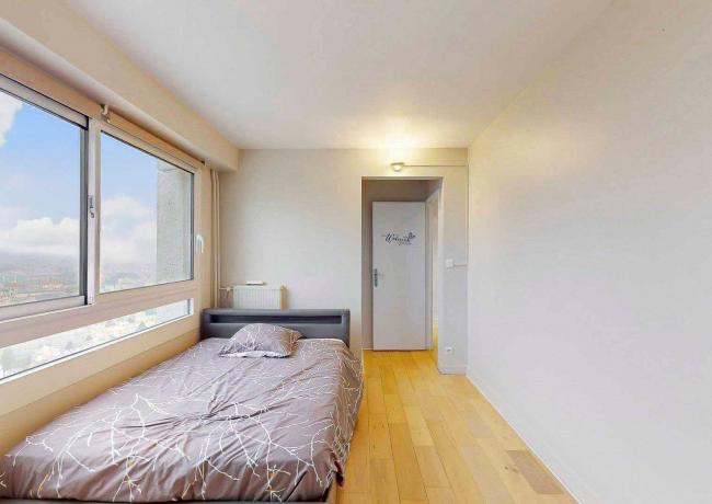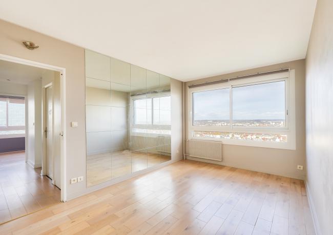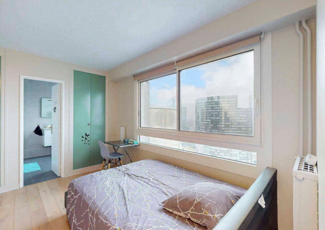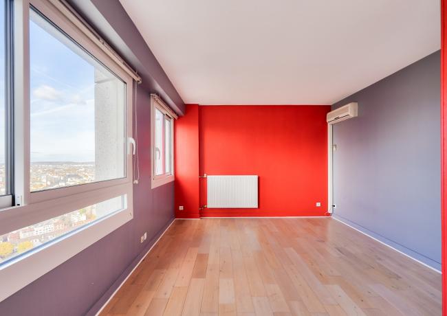 A deux pas de la Défense et de tous les commerces, dans la Tour Gambetta de 37 étages datant des années 1970.