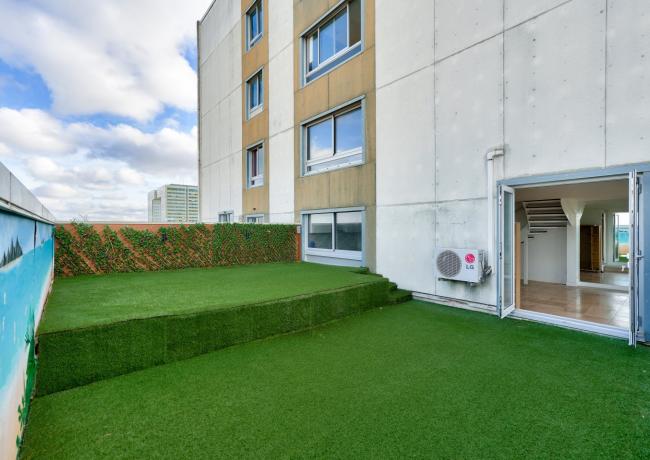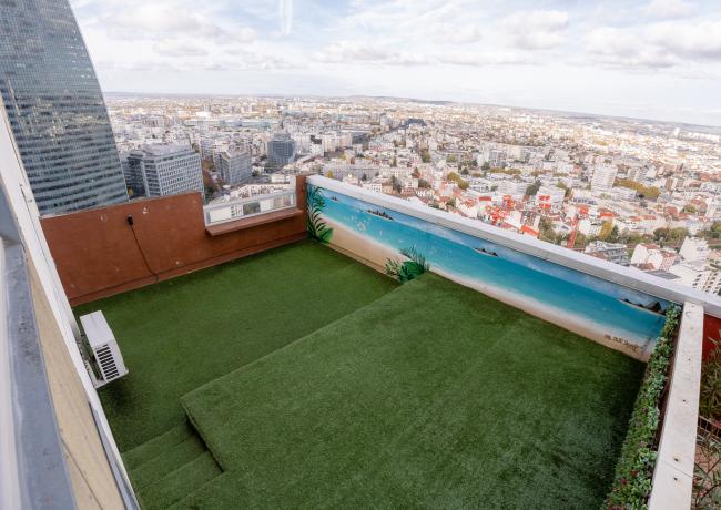 Terrasse de 45m² sur 2 niveaux, offrant une perspective sur les plus beaux monuments parisiens