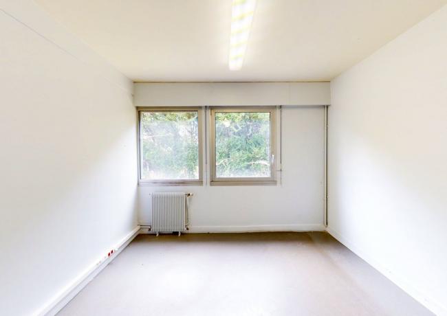 Au rez-de-chaussée : Espace de stockage d’archives (accès véhicules sur cour avant, éclairage zénithal par plaques translucides, racks d’entreposage, porte à l’arrière métallique à commande manuelle, escaliers métalliques vers une mezzanine à usage de stockage annexe) – Chaufferie (aveugle) – Bureaux vacants ou aménagés en espaces de stockage sous mezzanine (porte piétonne sur l’avant, fenêtres sur le côté sud-est, cloisonnements légers) Sanitaires (fenêtre sur le côté, lavabo, 3 cabines de WC) – Local social sous mezzanine (fenêtre sur le côté, évier, cabine de douches.