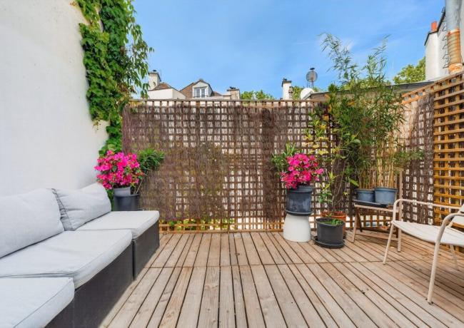 - Au 4e étage – sous combles : Salon TV / Salle de jeux Bureau donnant sur une terrasse de 10,43 m², ouvrant sur une vue dégagée et inspirante des toits de Paris