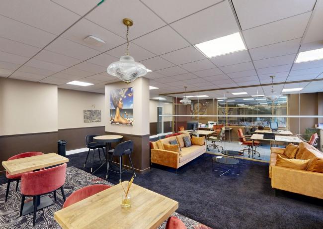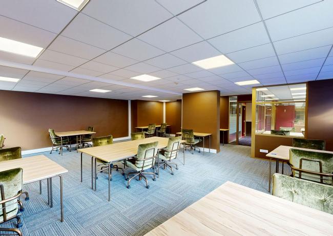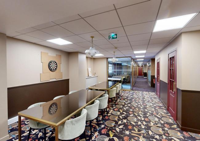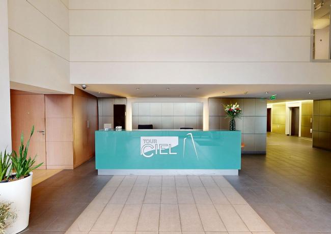 Les bureaux sont situés au 1er étage du bâtiment. L’étage est desservi par 4 ascenseurs, un escalier central, deux escaliers de secours et un ascenseur secondaire. L’accès aux bureaux depuis les ascenseurs est contrôlé par badge.