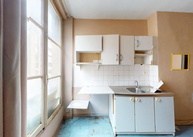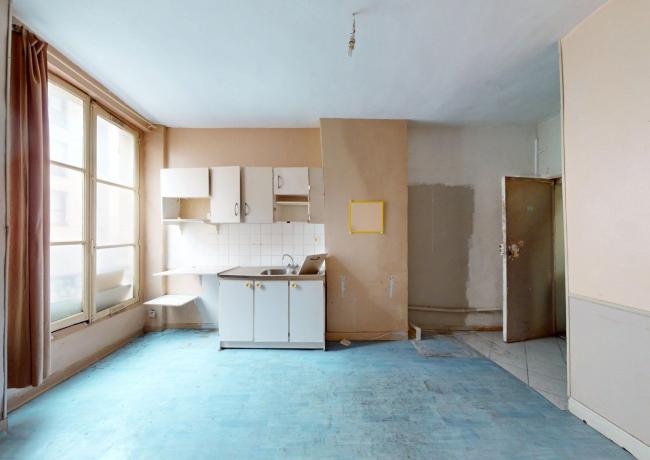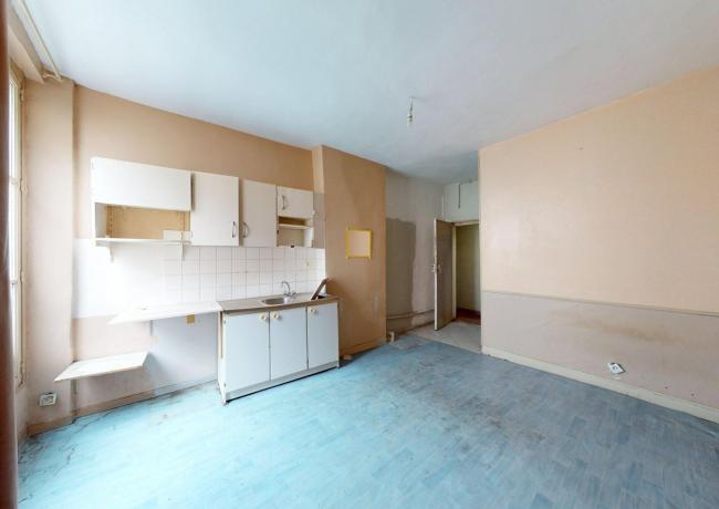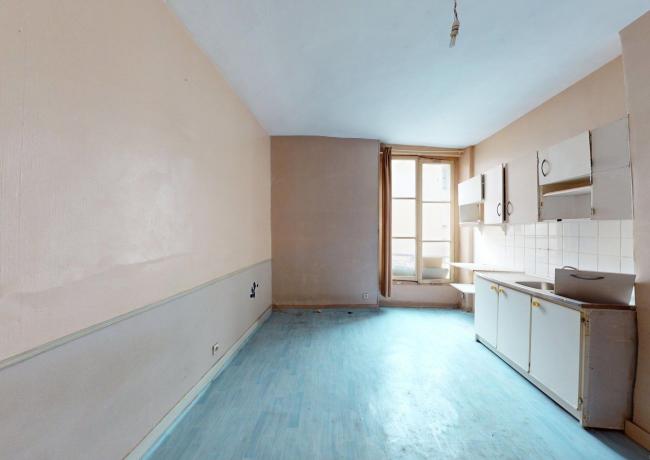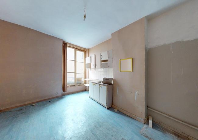 Au 1er étage : un studio comprenant : une pièce avec coin cuisine, salle d'eau/wc. Absence de système de chauffage. Travaux à prévoir.